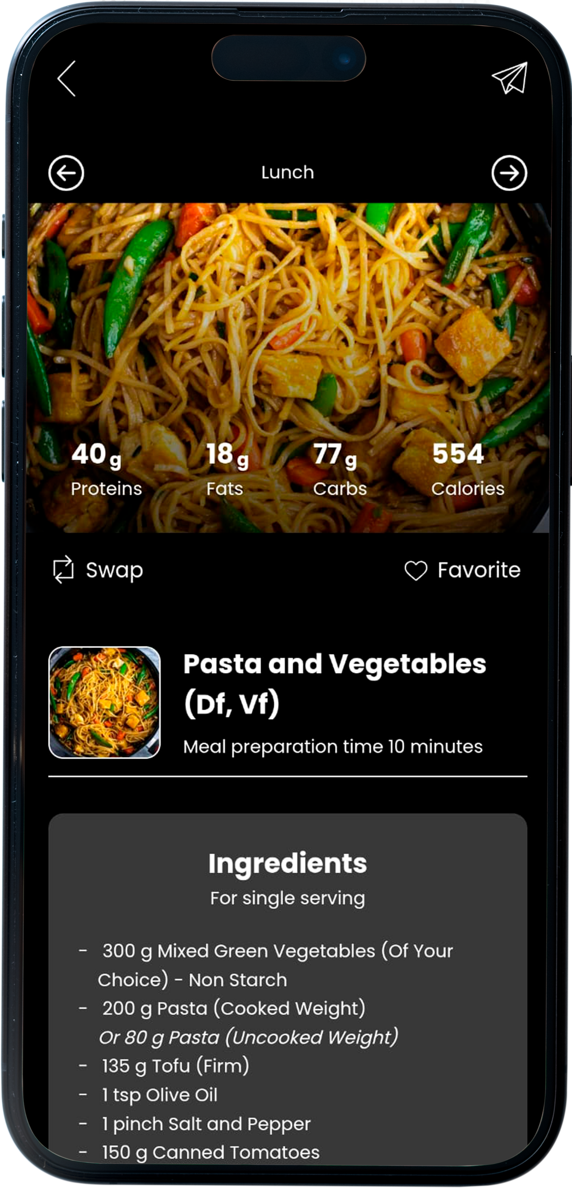 ✓ Personalised Meal Plan (vegetarian, vegan, gluten-free, dairy free options)